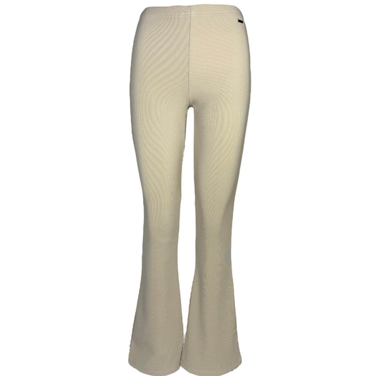 - De broek heeft een all-over ribstof, ben je opzoek naar een gladde zwarte flared ga dan voor de Kinsey Flared.