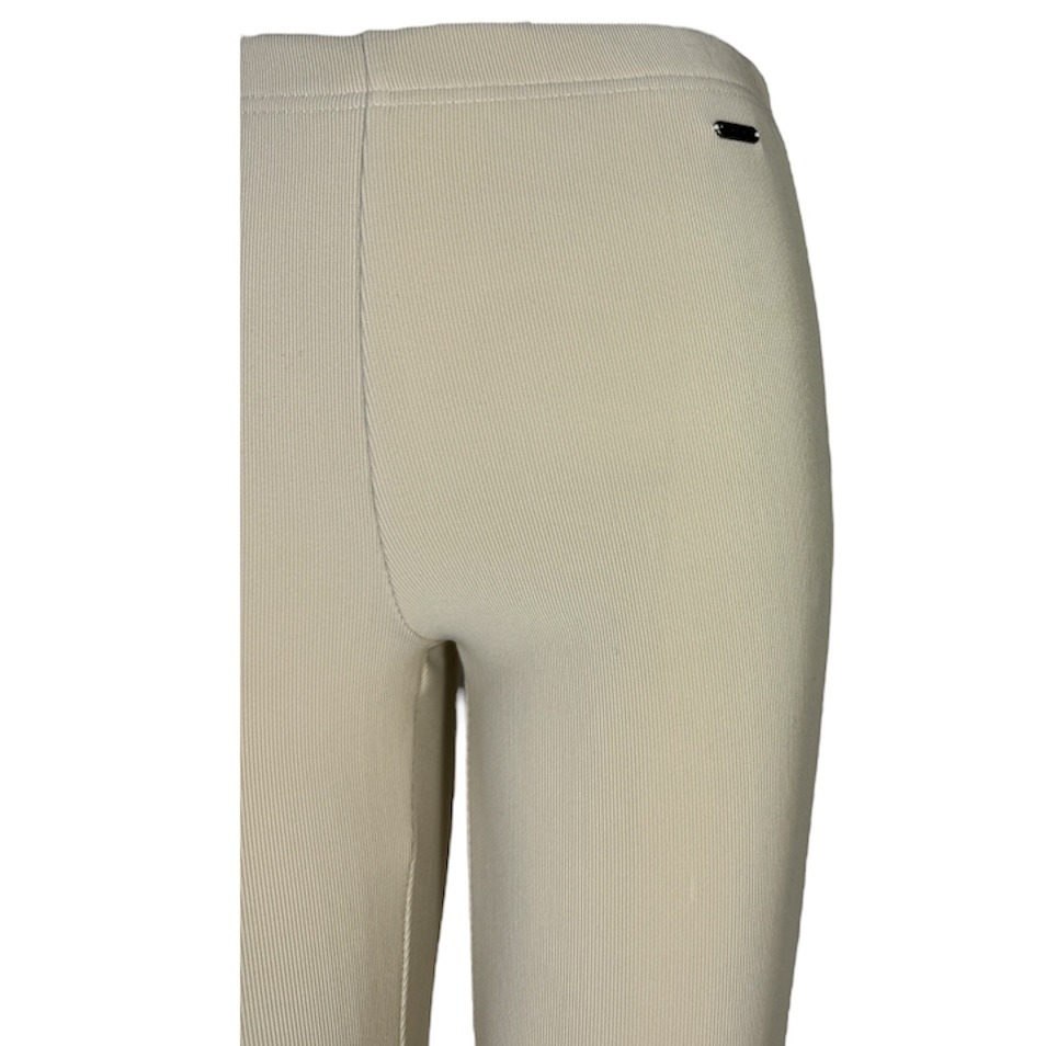- De broek is high-waisted, heeft een elastische tailleband en bevat geen touwtjes.
