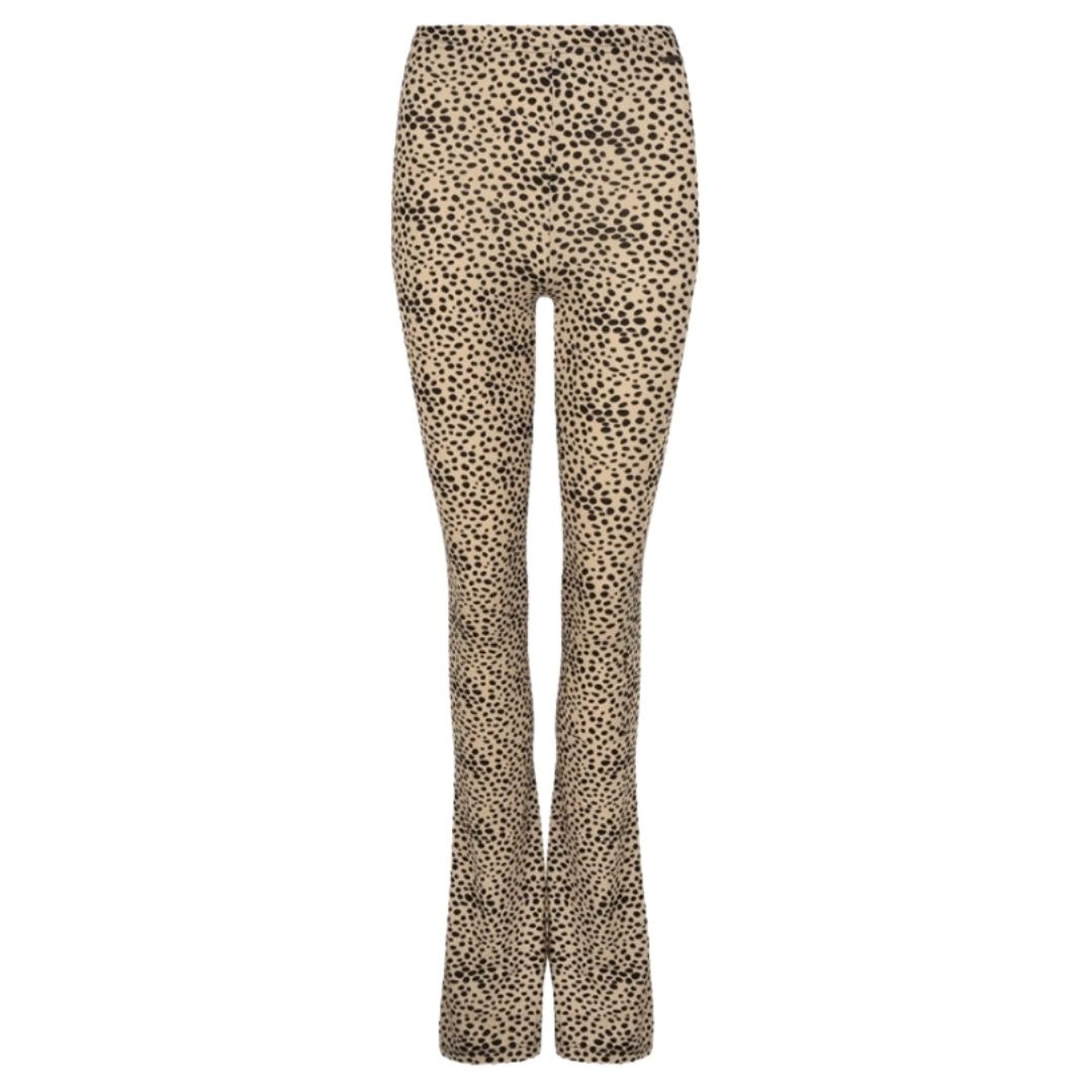 - De broek heeft een all over dots patroon in de kleur beige/zwart.