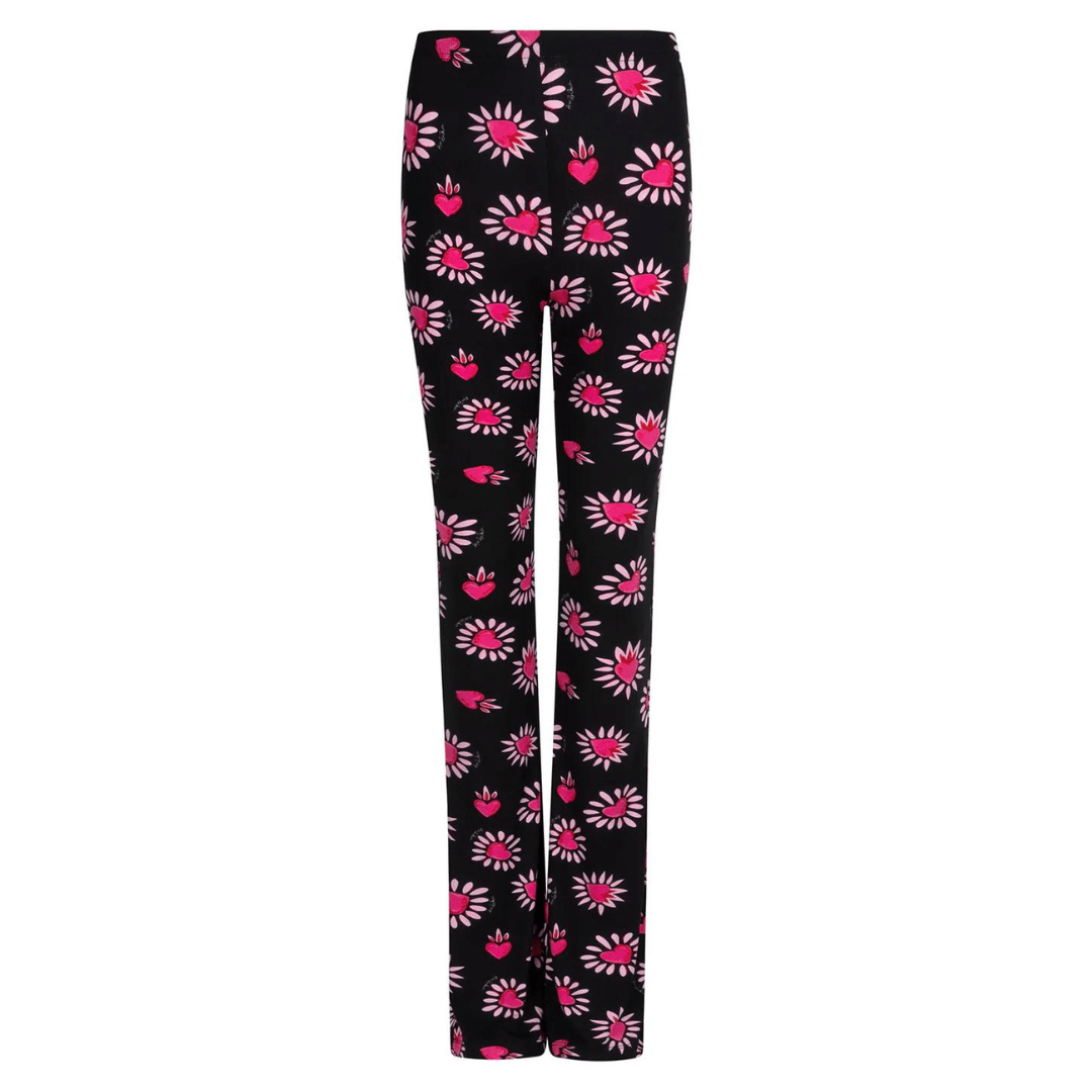 - De broek heeft een all over hartjes patroon.