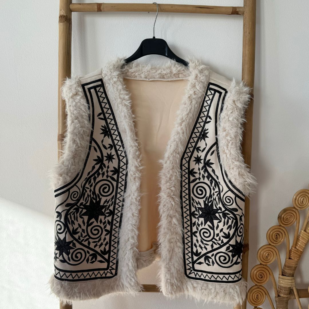 - Het gilet heeft een teddy detail.