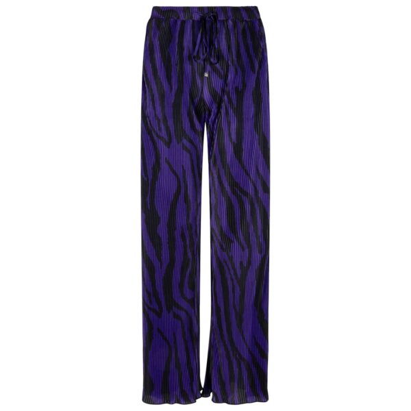 - De pants is high-waisted, heeft een elastische tailleband en bevatĀ touwtjes.