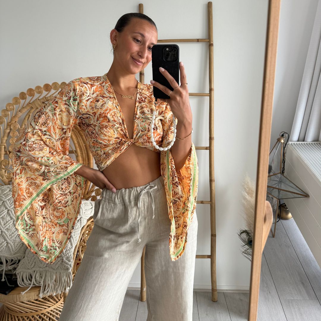 • De Boho Wrap Top heeft een mooie flared sleeve / trompetmouwen.