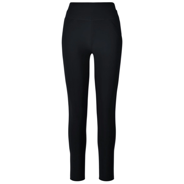 - De broek is high-waisted en heeft een elastische tailleband.