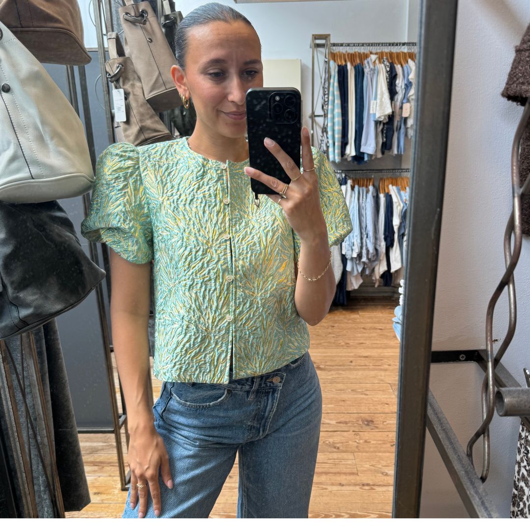 Ambika Lisa Jacquard Top Flower – Mint/Blue
