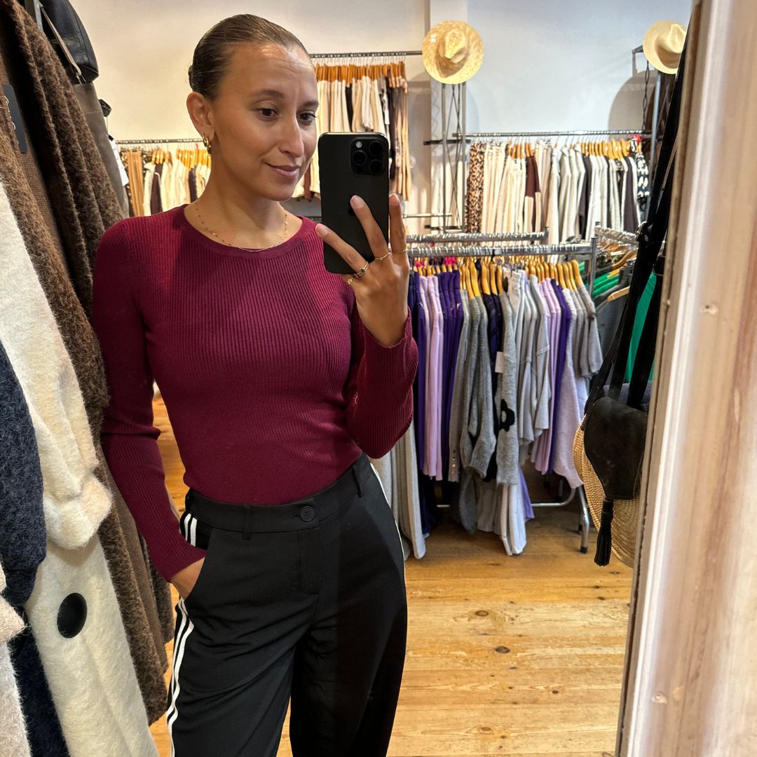 Zara Basic LS Rib Top Dames – Burgundy