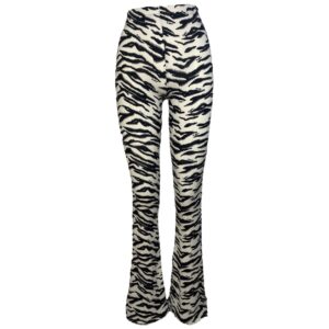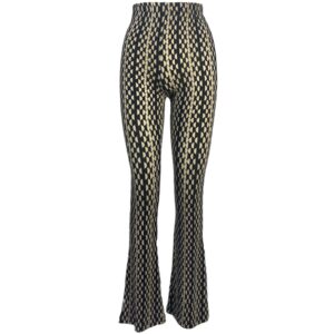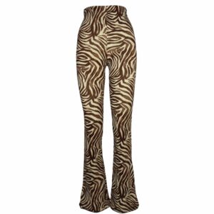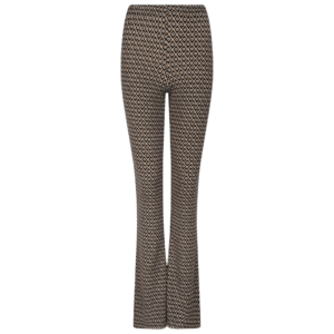 • De broek is high-waisted en heeft een elastische tailleband.
